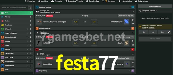 O festa77 oferece uma grande seleção de opções de apostas em e-sports com probabilidades competitivas